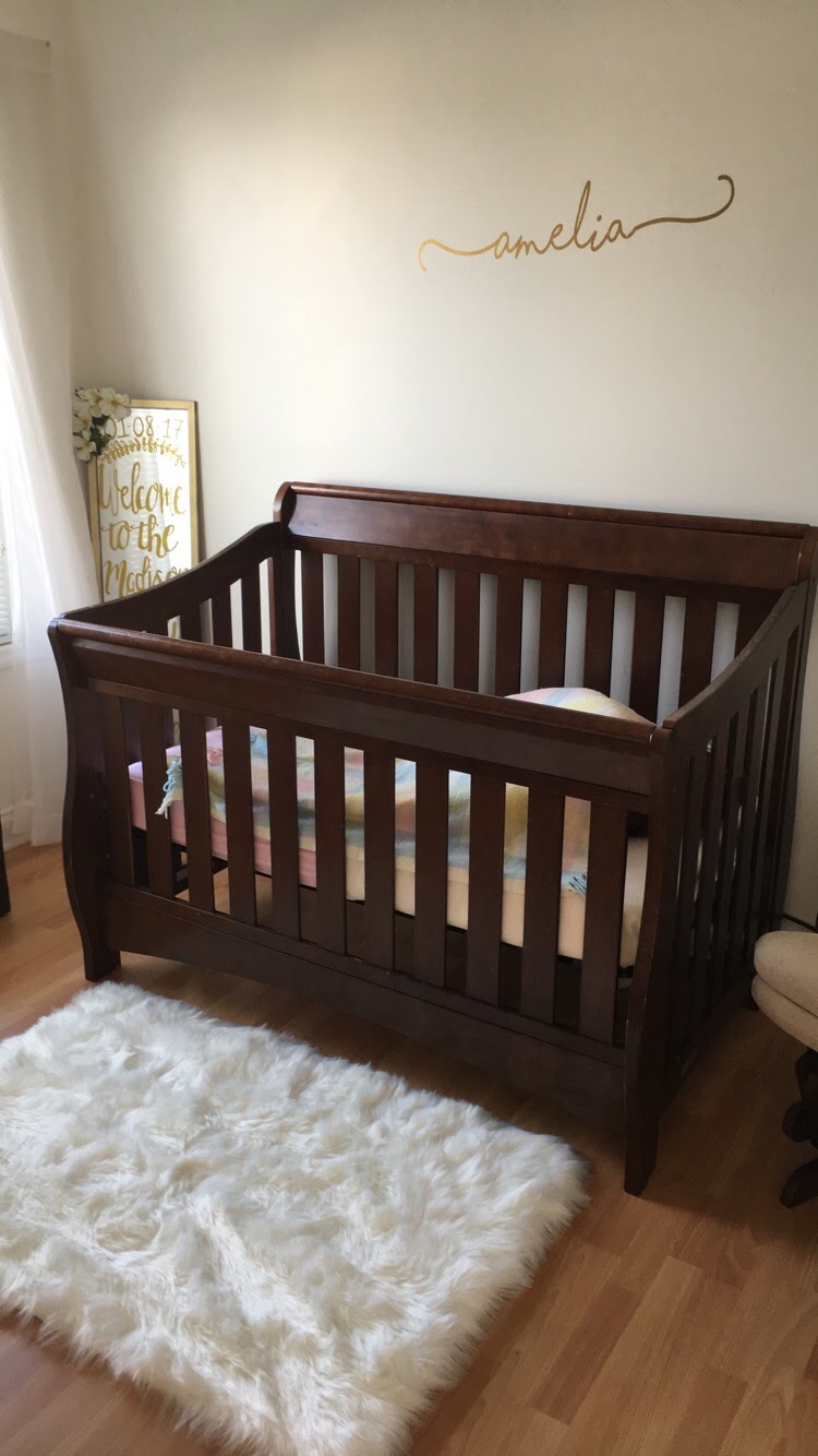 Not bad at all! I do plan on purchasing her a small 4 cube shelf to go underneath her accent wall and a nice decorative crib sheet set to bring out the soft pink that I envisioned in her color palette.